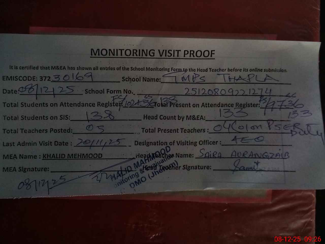 | EMIS Code: 37230169 | Name of School: GMPS THAPLA | |||