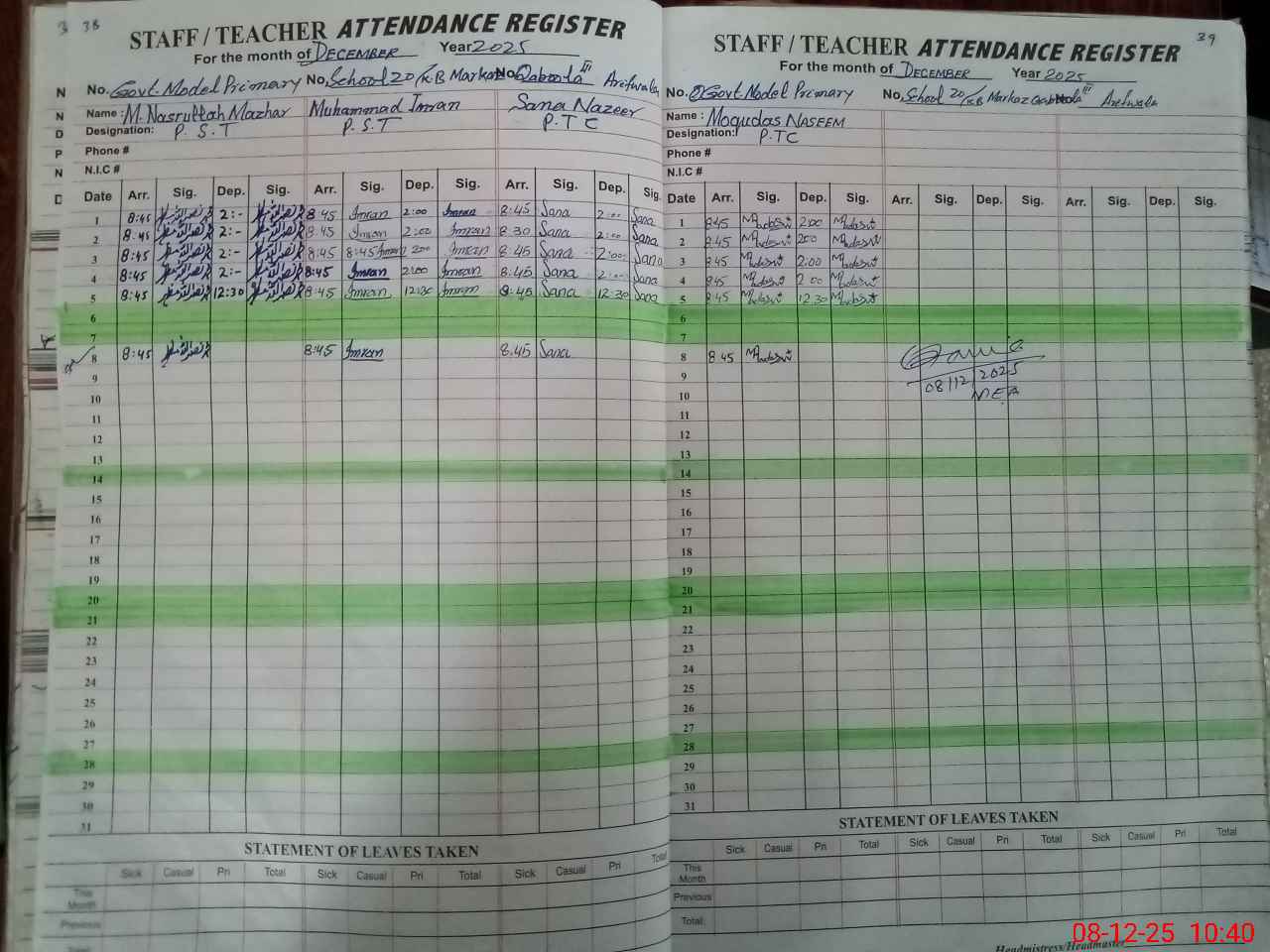 | Name: FO**** SH**** Designation: (School Headmaster's/Headmistress's) PST Phone/Cell Number: 03**** |
