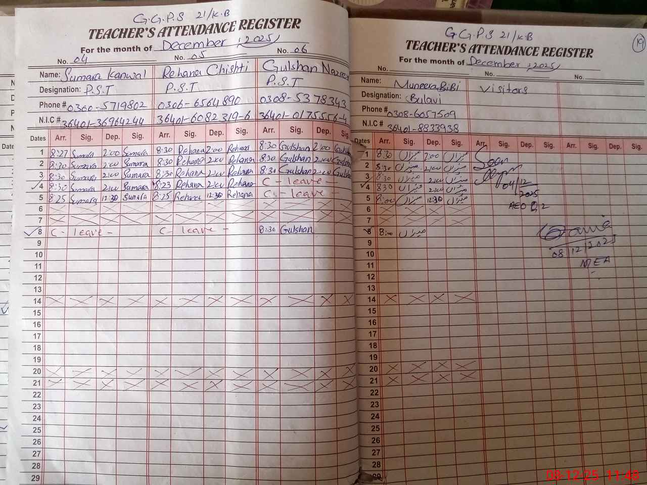 | Attendance Register | Head Teacher | MEA with School | Visit Proof |