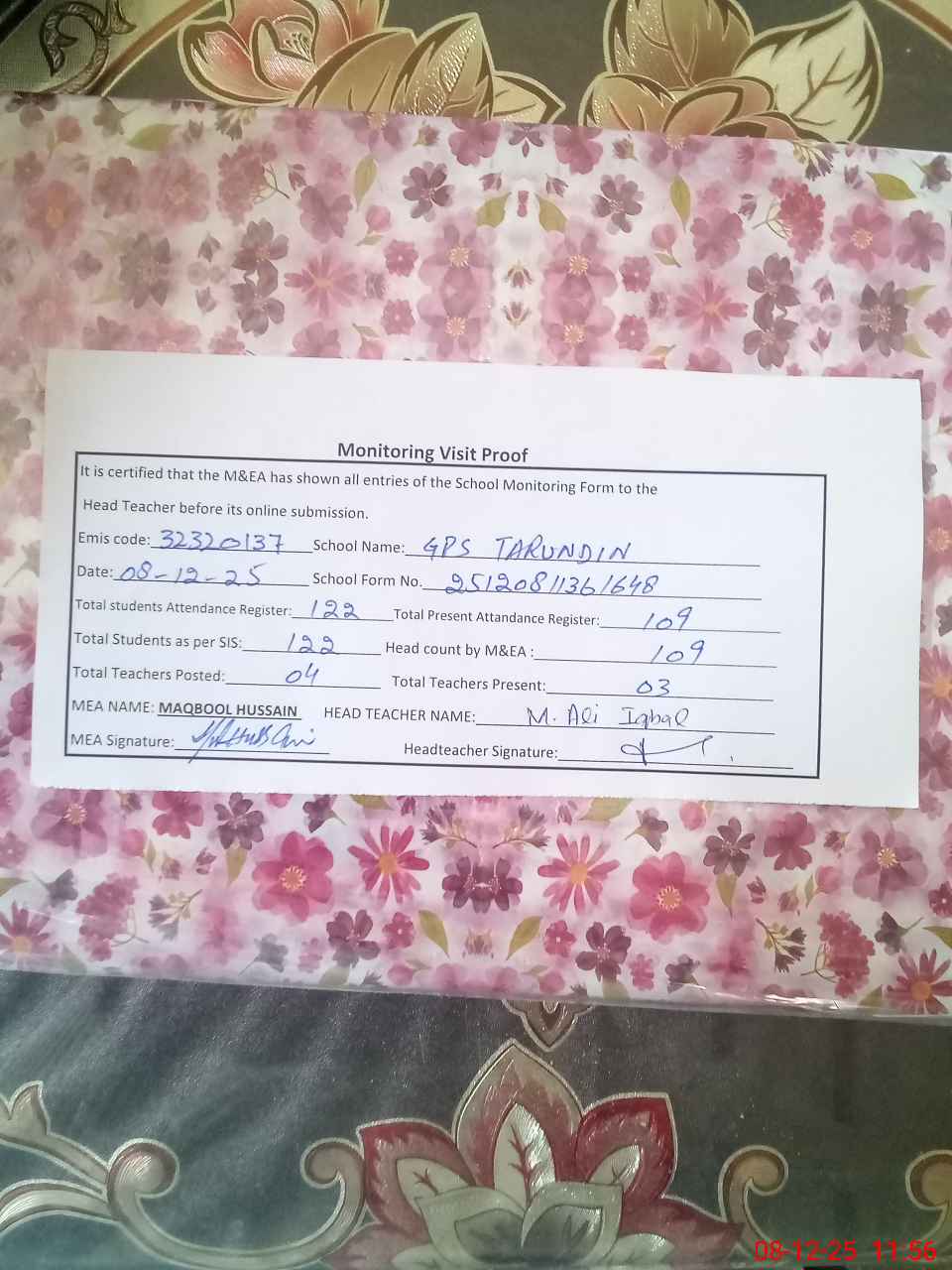 | EMIS Code: 32320137 | Name of School: GPS TARANDIN | |||