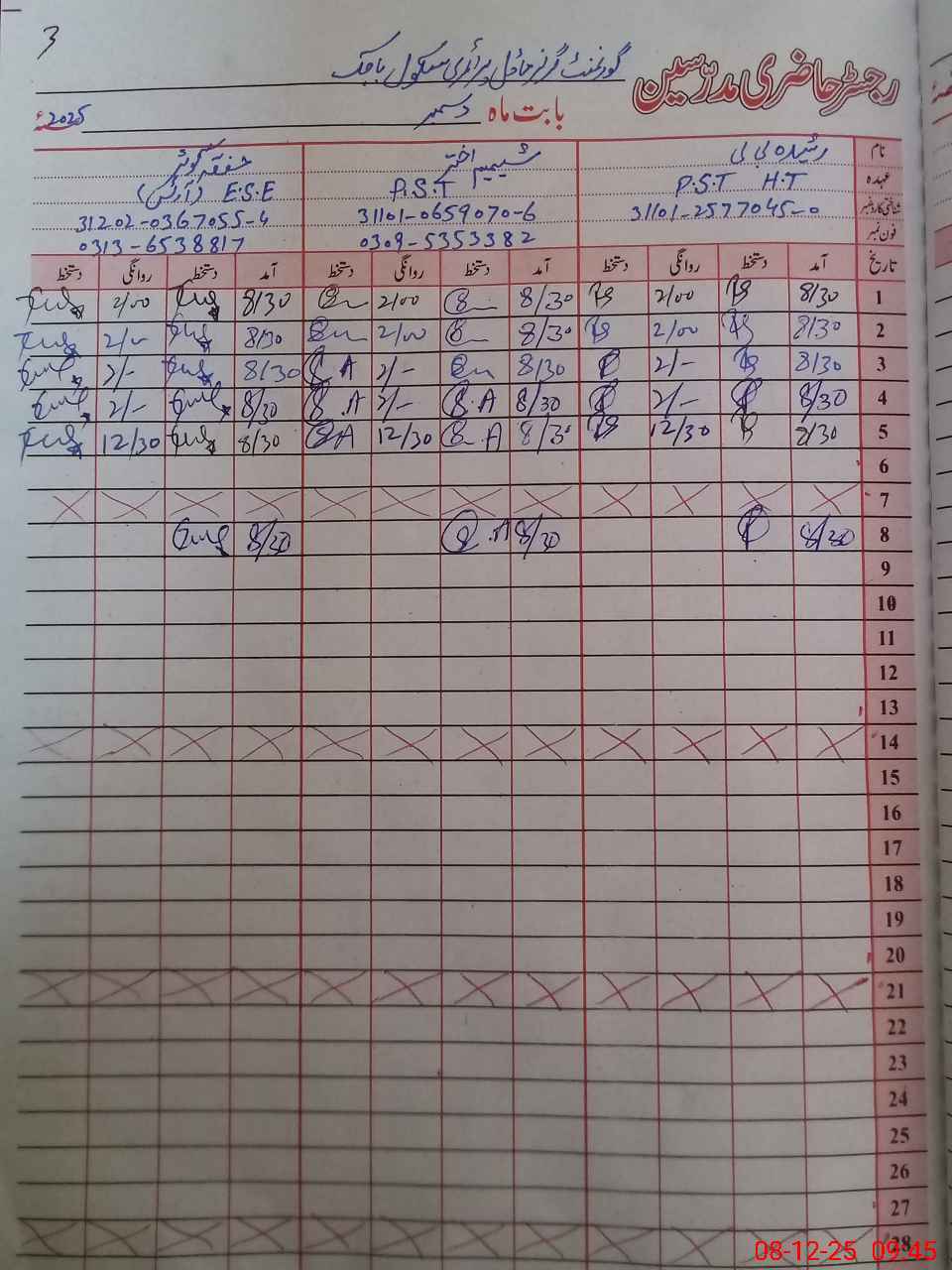 | Name: RA**** BI**** Designation: (School Headmaster's/Headmistress's) PST Phone/Cell Number: 03**** |