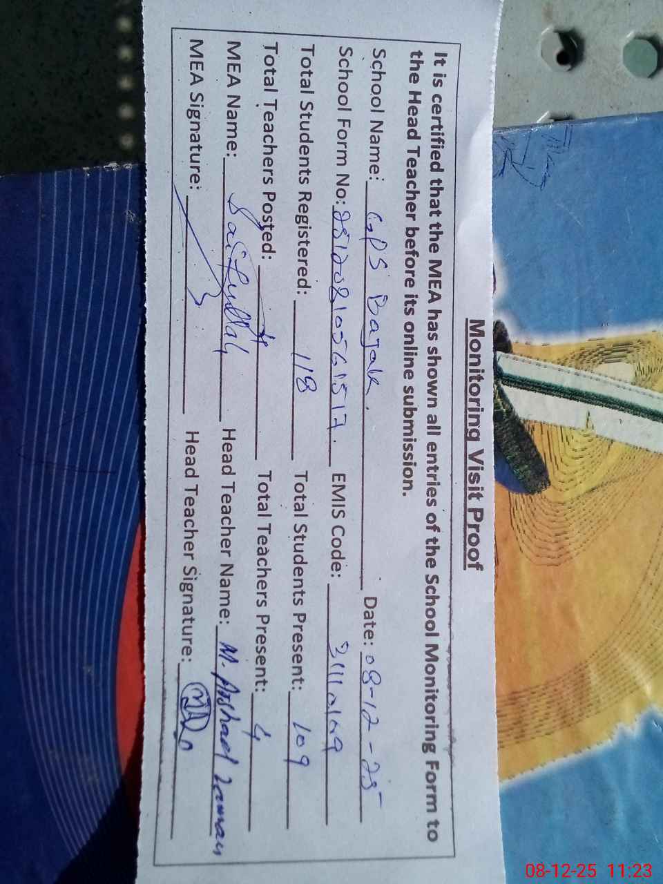 | EMIS Code: 31110109 | Name of School: GPS BAJAK | |||