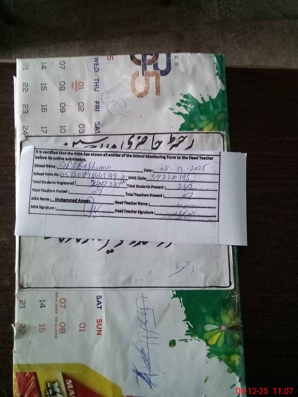 | EMIS Code: 39320195 | Name of School: GPS BAGHIANA PO SADDAR GOGERA | |||