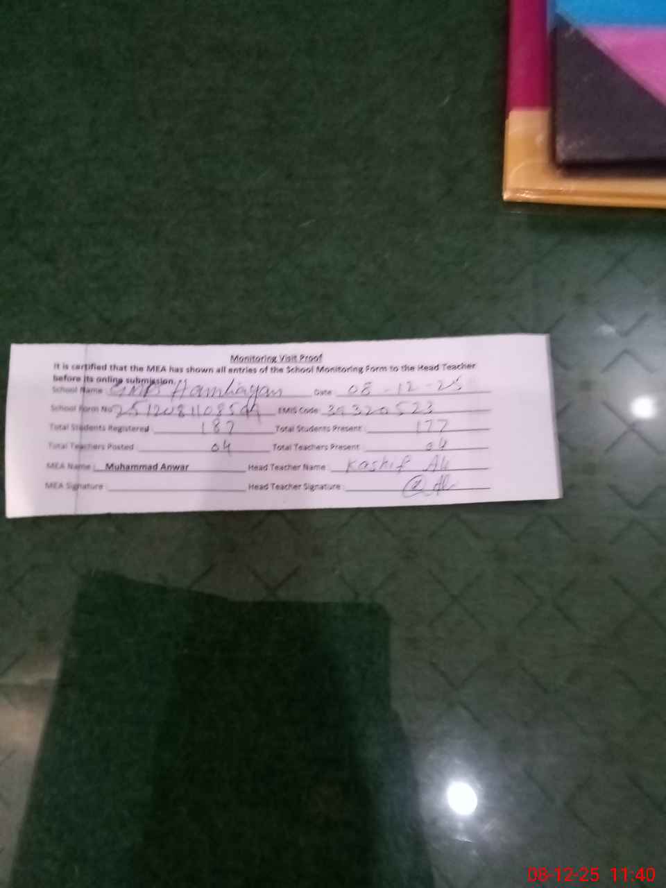 | EMIS Code: 39320523 | Name of School: GMPS HAMLANIA | |||