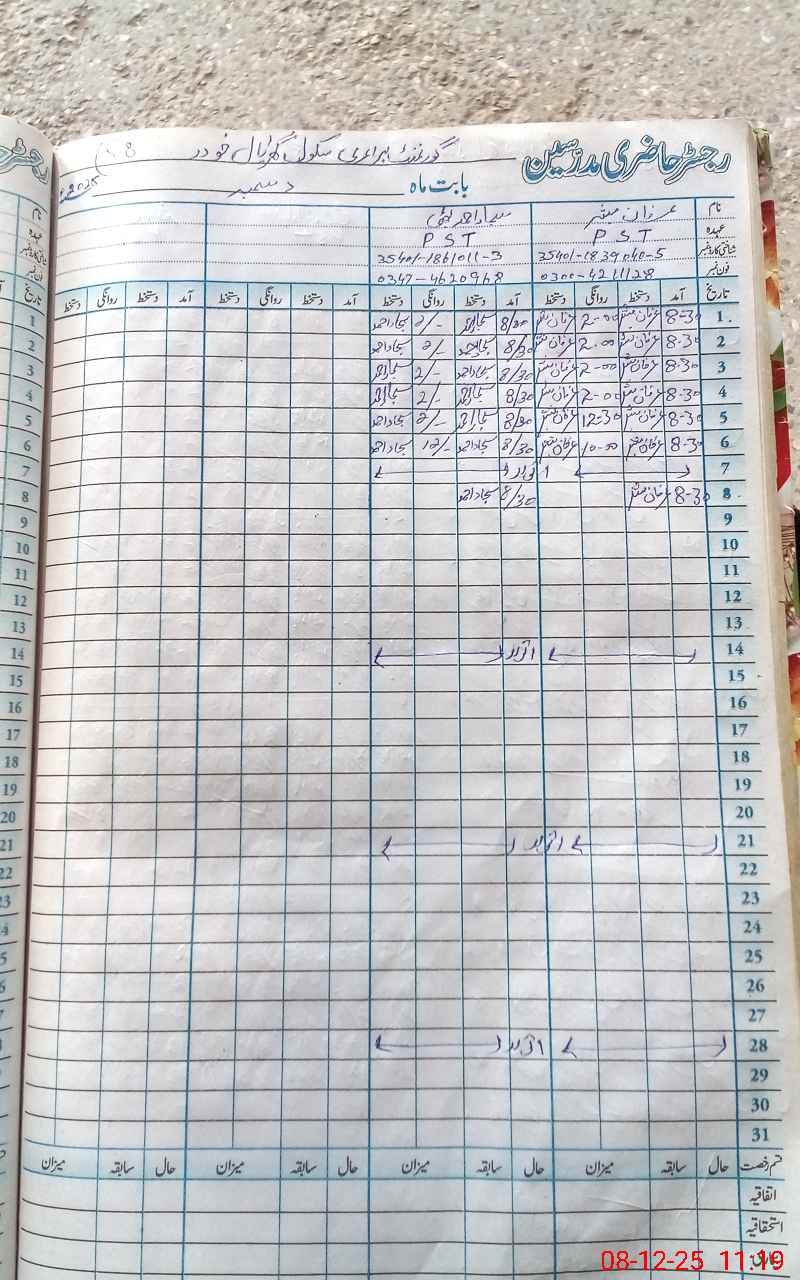 | Name: IR**** MU**** Designation: (School Headmaster's/Headmistress's) PST Phone/Cell Number: 03**** |