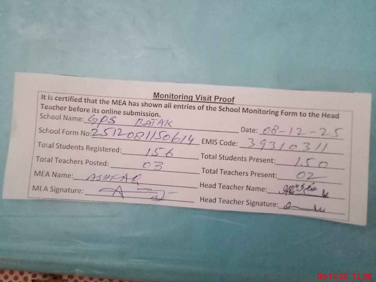 | EMIS Code: 39310311 | Name of School: GPS BATAK | |||