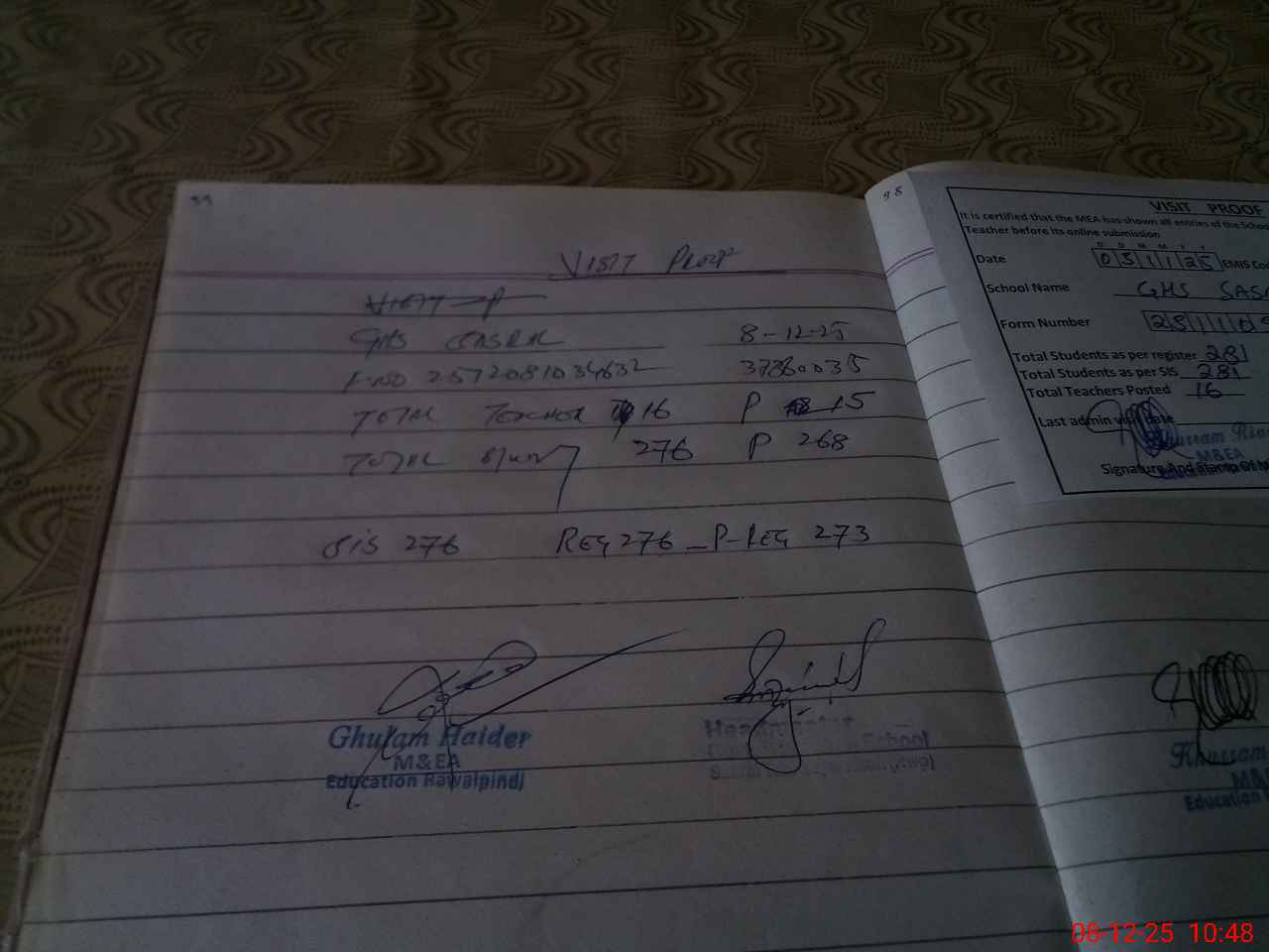 | Attendance Register | Head Teacher | MEA with School | Visit Proof |