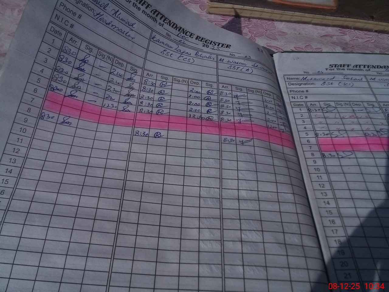 | CNIC | Full Name | Designation | R/C | Absence During Last Calender Month |