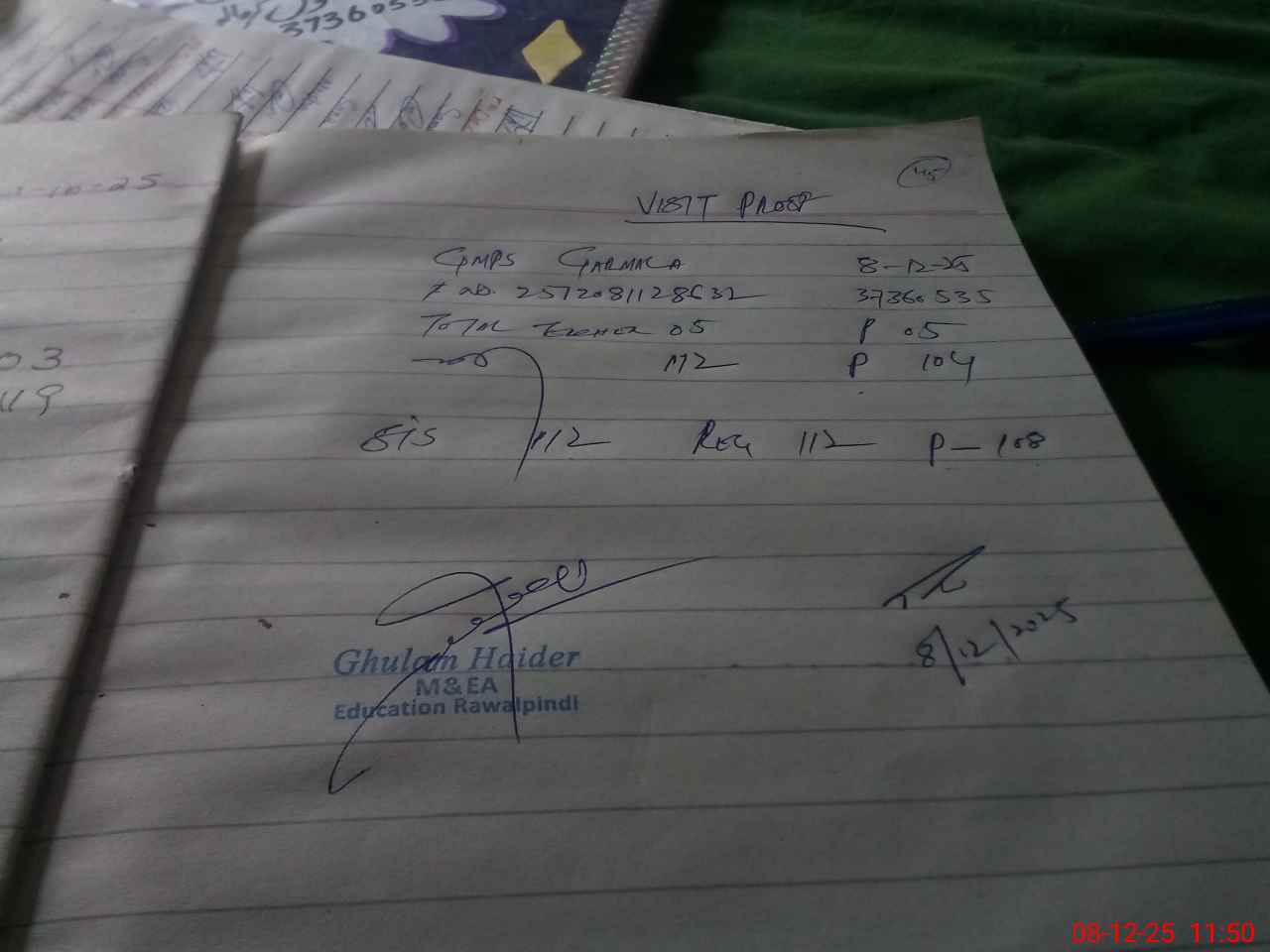 | Monitoring Date: 08-12-2025 | Start Time: 08-12-2025 11:16 AM | End Time: 08-12-2025 11:54 AM | Name of MEA: Gh**** Ha**** | |