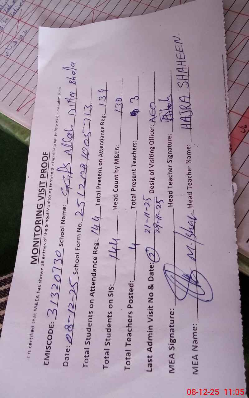 | EMIS Code: 31320730 | Name of School: GGPS ALLAH DITTA BEHLA | |||