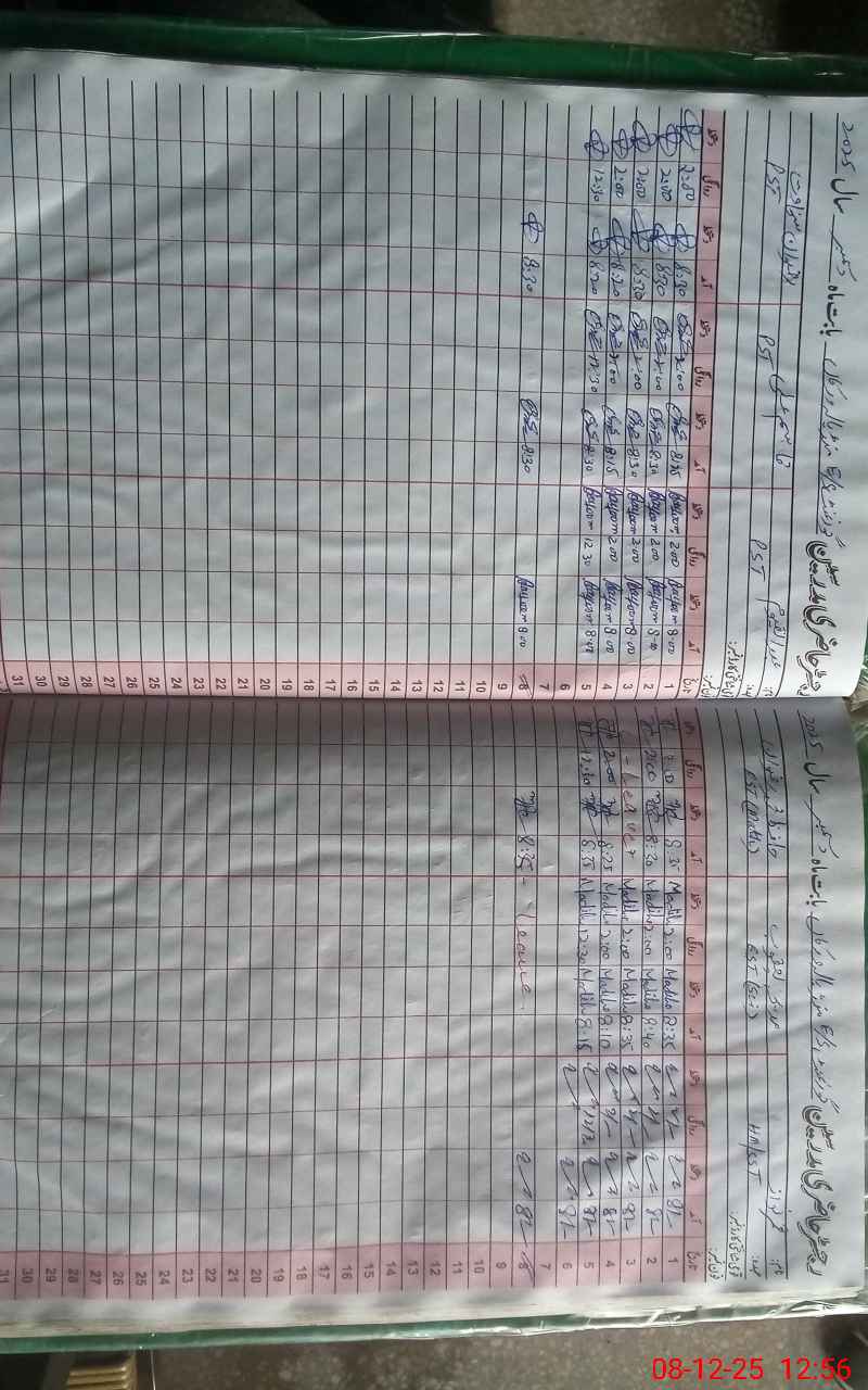 | CNIC | Full Name | Designation | R/C | Absence During Last Calender Month |