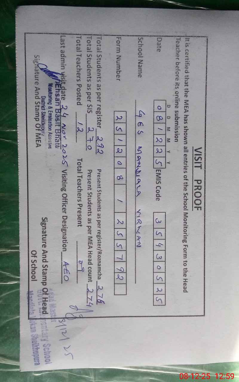 | EMIS Code: 35430525 | Name of School: GES MANDIALA VIRKAN | |||