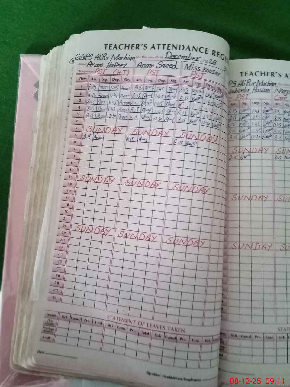 | Remarks (Use Separate Page if Required): online teacher attendance updated on sis today and one class is sitting in veranda and school has insaf afternoon classes with students strength 35 | |||||