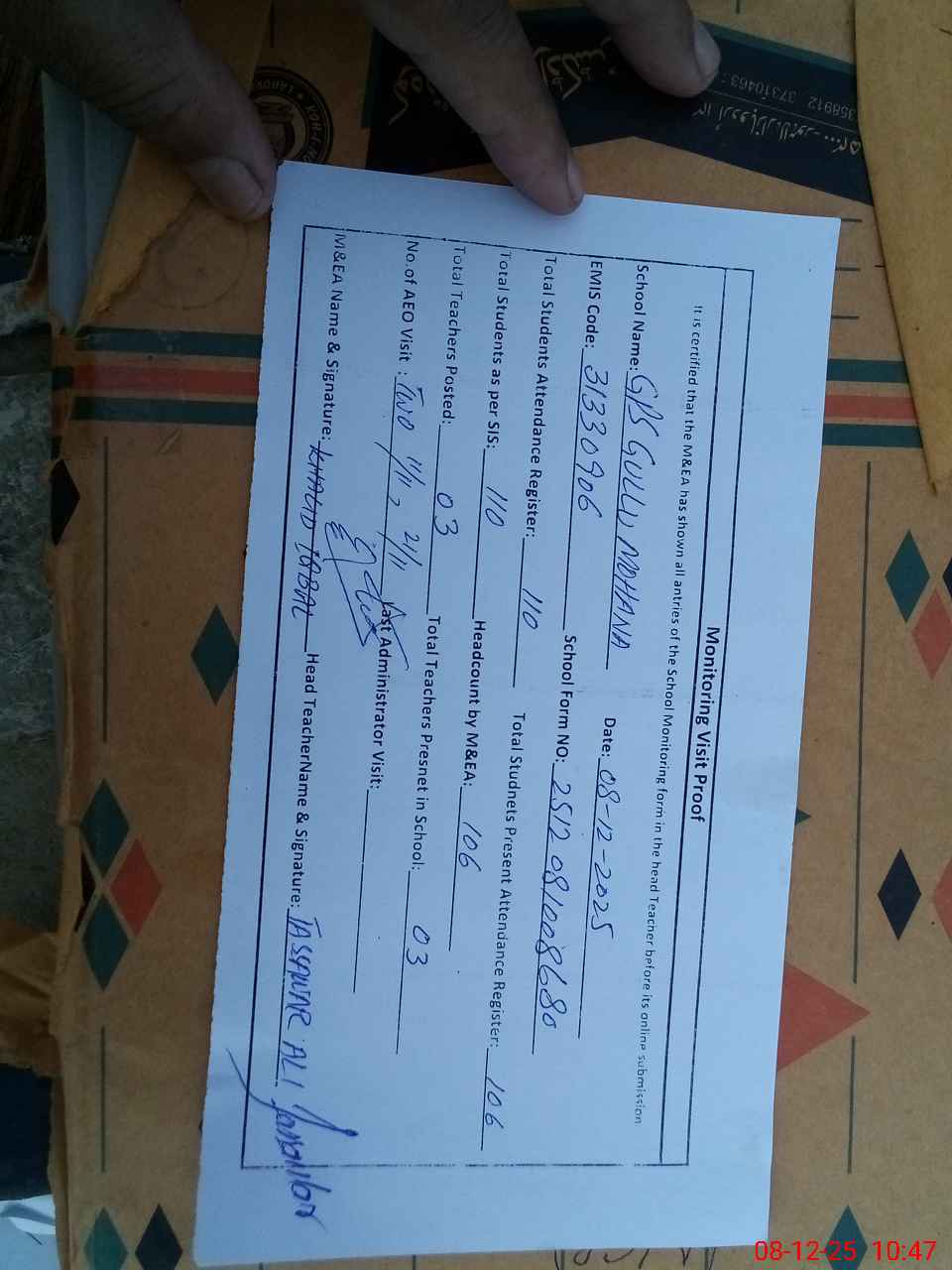 | EMIS Code: 31330906 | Name of School: GPS GULLU MOHANA | |||