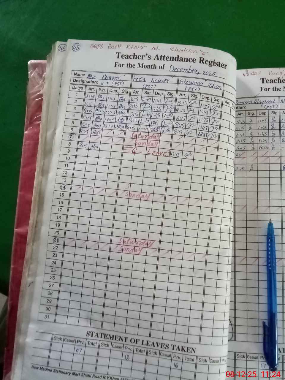 | Remarks (Use Separate Page if Required): online teacher attendance updated on sis today and two classes are sitting in veranda | |||||