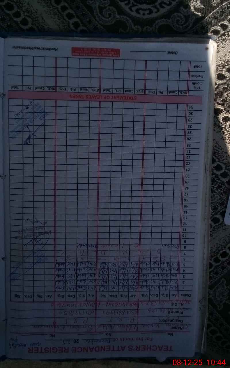 | Name: SH**** KO**** Designation: (School Headmaster's/Headmistress's) PST Phone/Cell Number: 03**** |