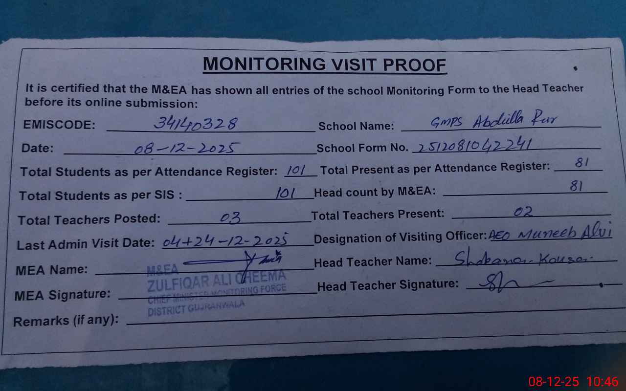 | EMIS Code: 34140328 | Name of School: GMPS ABDULLA PUR | |||