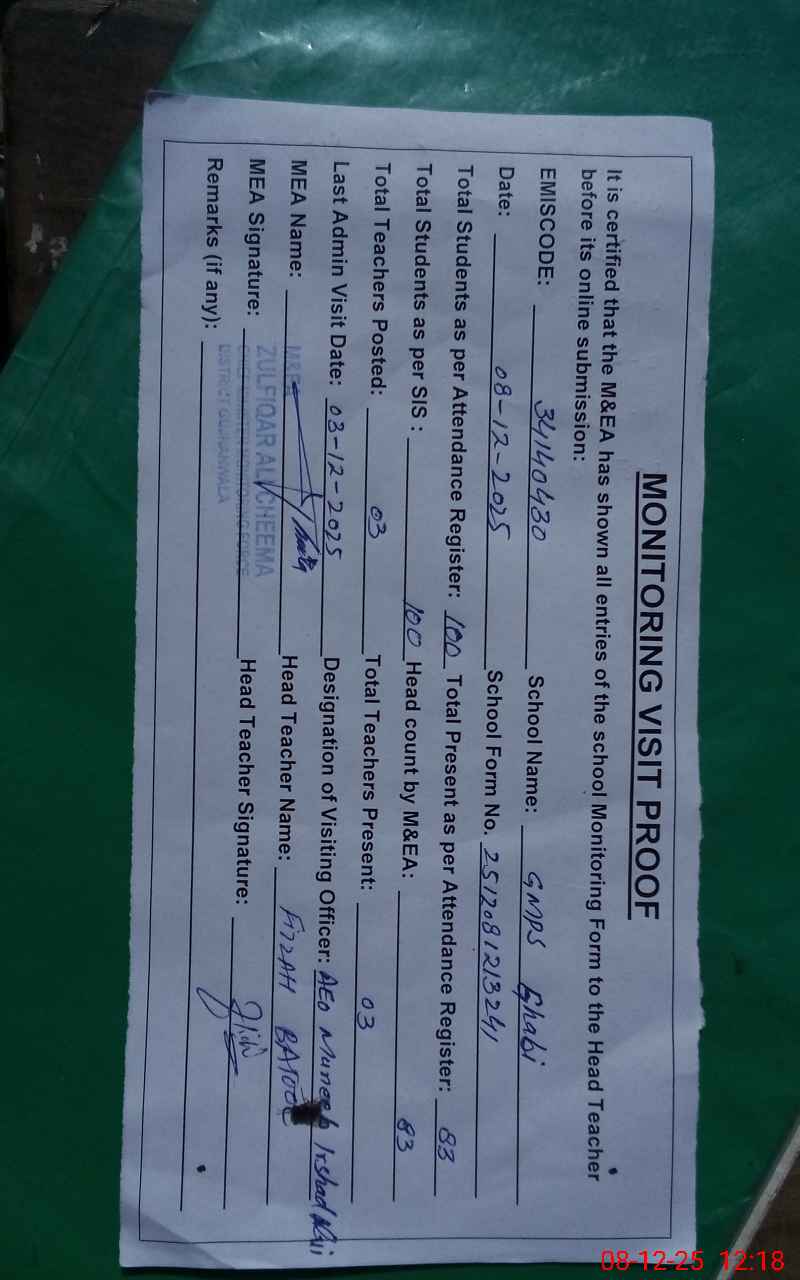 | EMIS Code: 34140430 | Name of School: GMPS GHABI | |||
