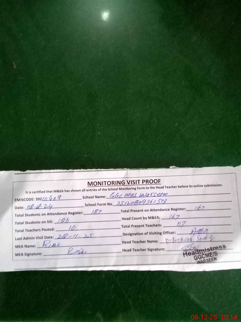 | EMIS Code: 39210409 | Name of School: GGCMES WARSEEN | |||