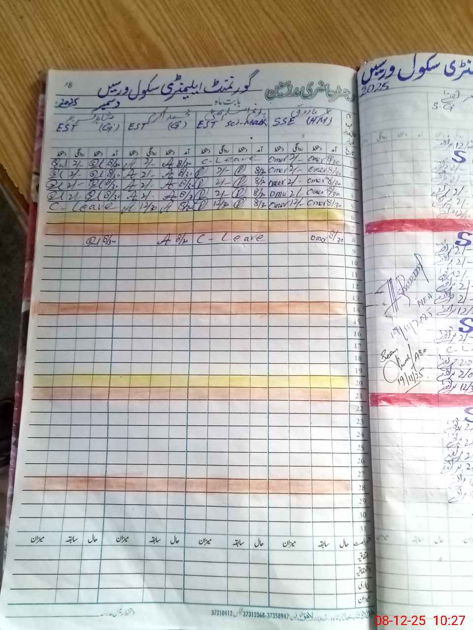 | CNIC | Full Name | Designation | R/C | Absence During Last Calender Month |