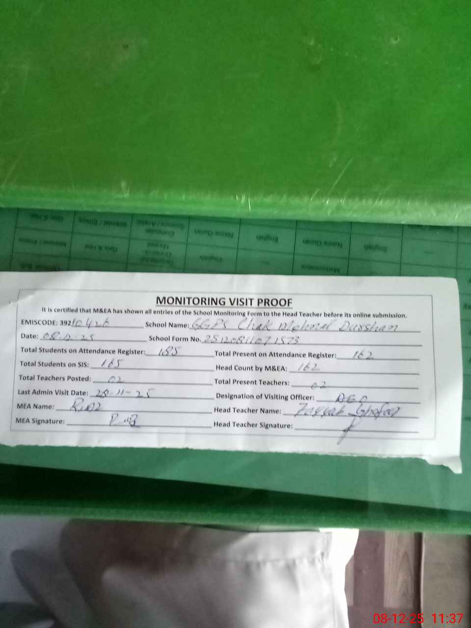 | EMIS Code: 39210426 | Name of School: GGPS CHAK MEHNAT DURSHAN | |||