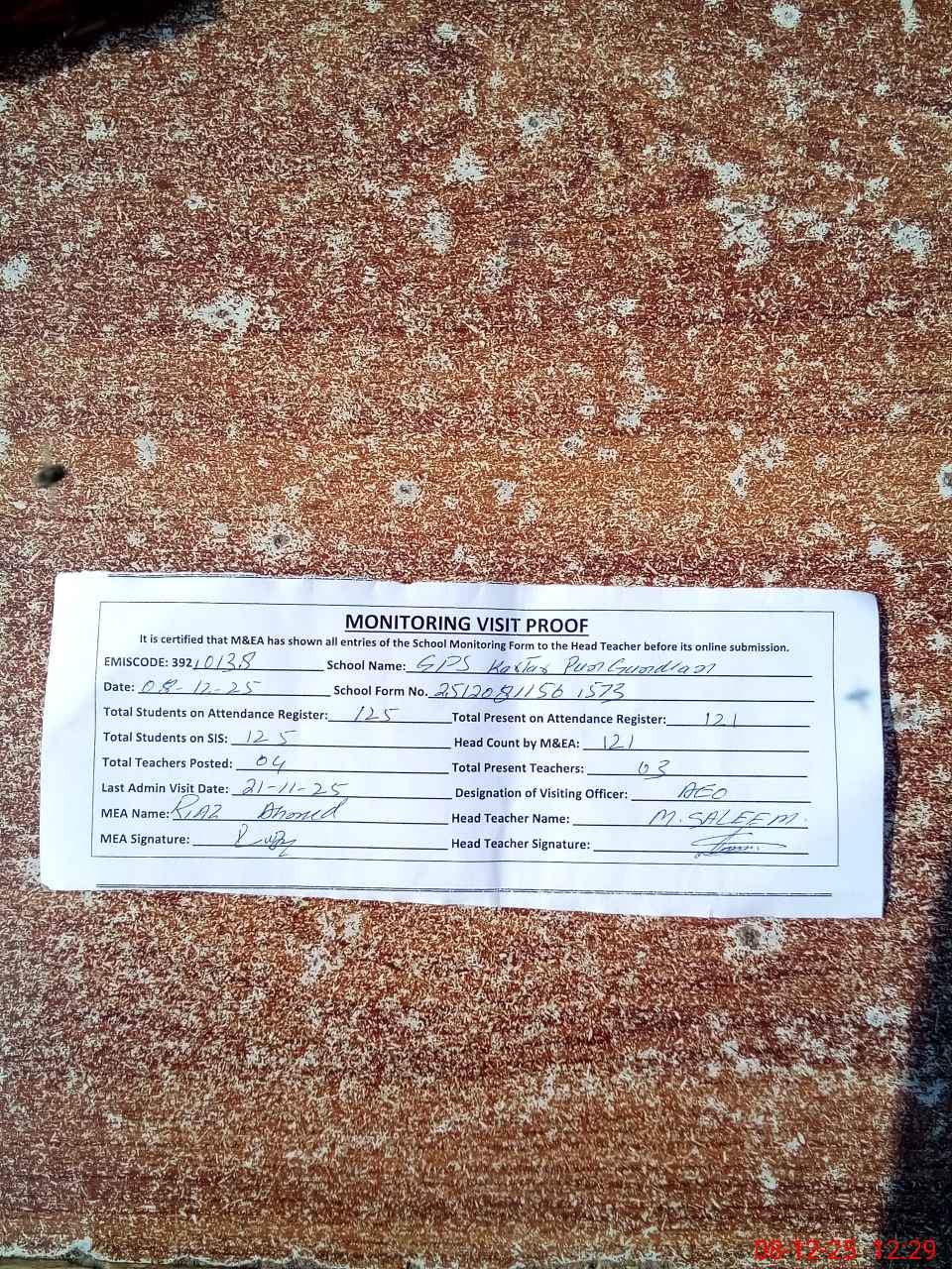 | EMIS Code: 39210138 | Name of School: GPS KARTAR PUR GANDIAN | |||