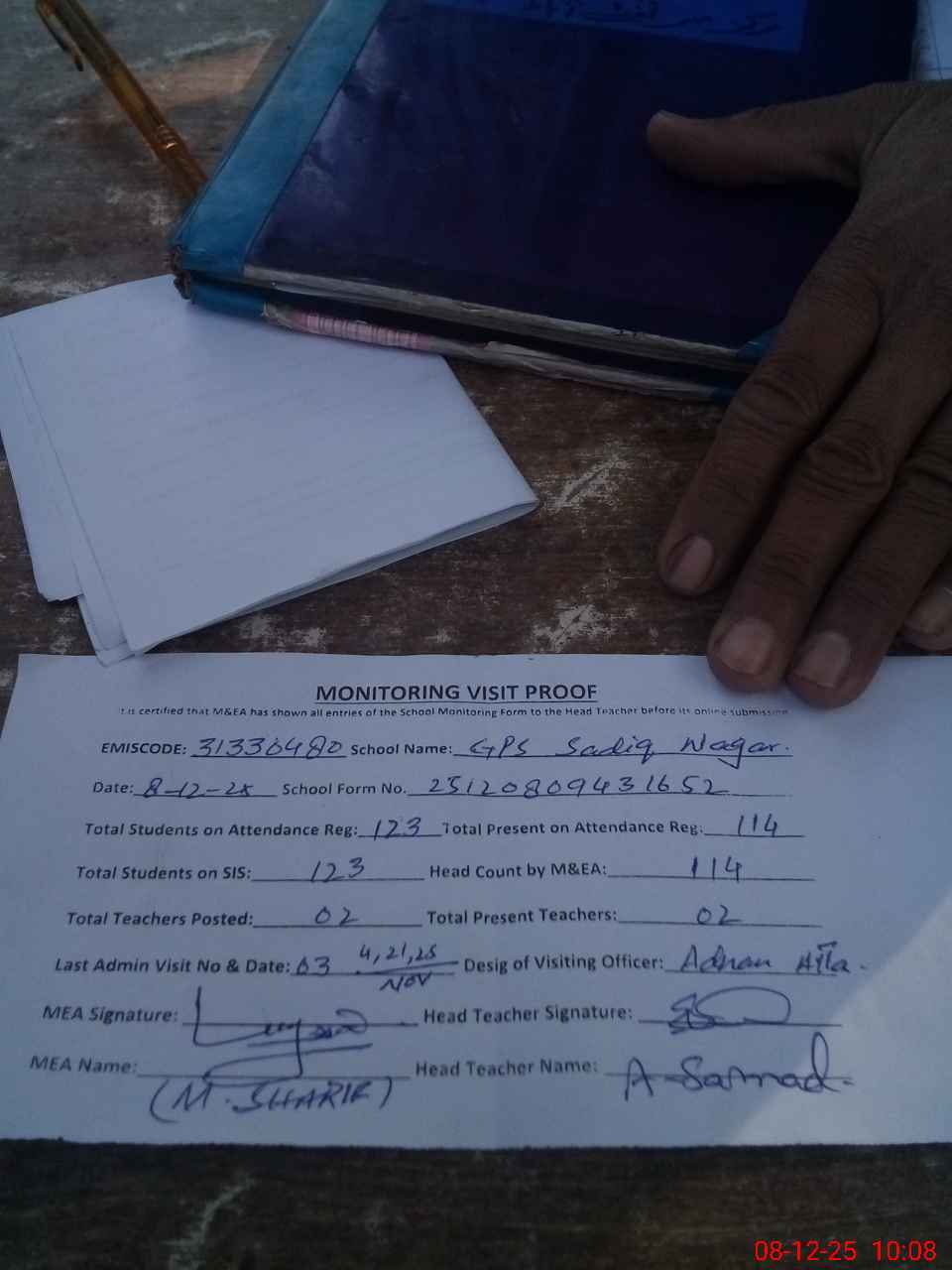 | EMIS Code: 31330480 | Name of School: GPS SADIQ NAGAR | |||