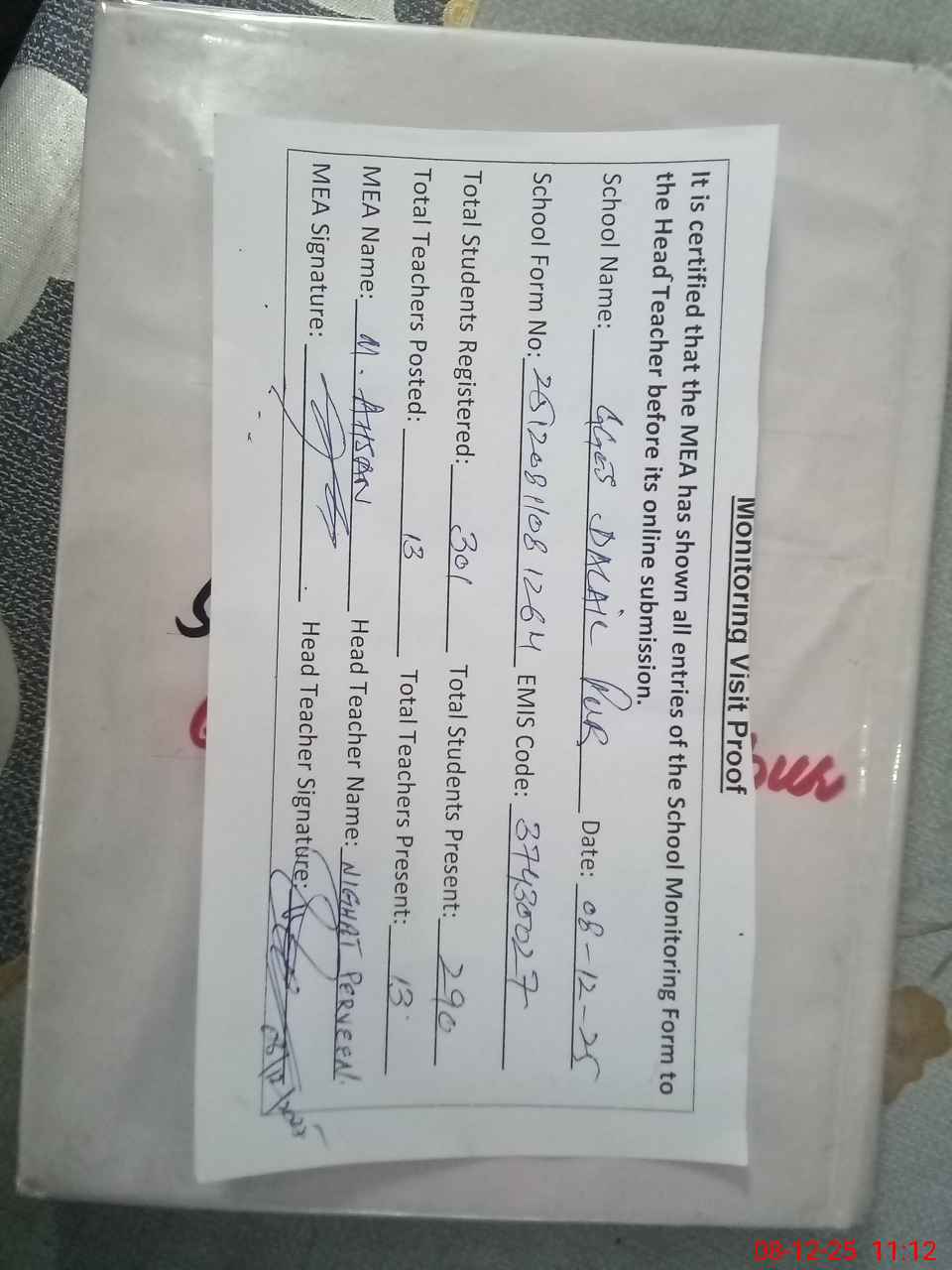 | Certified that this School was Inspected by the Undersigned MEA/DMO Today and the Information Stated Above is as Per Record. | |||||