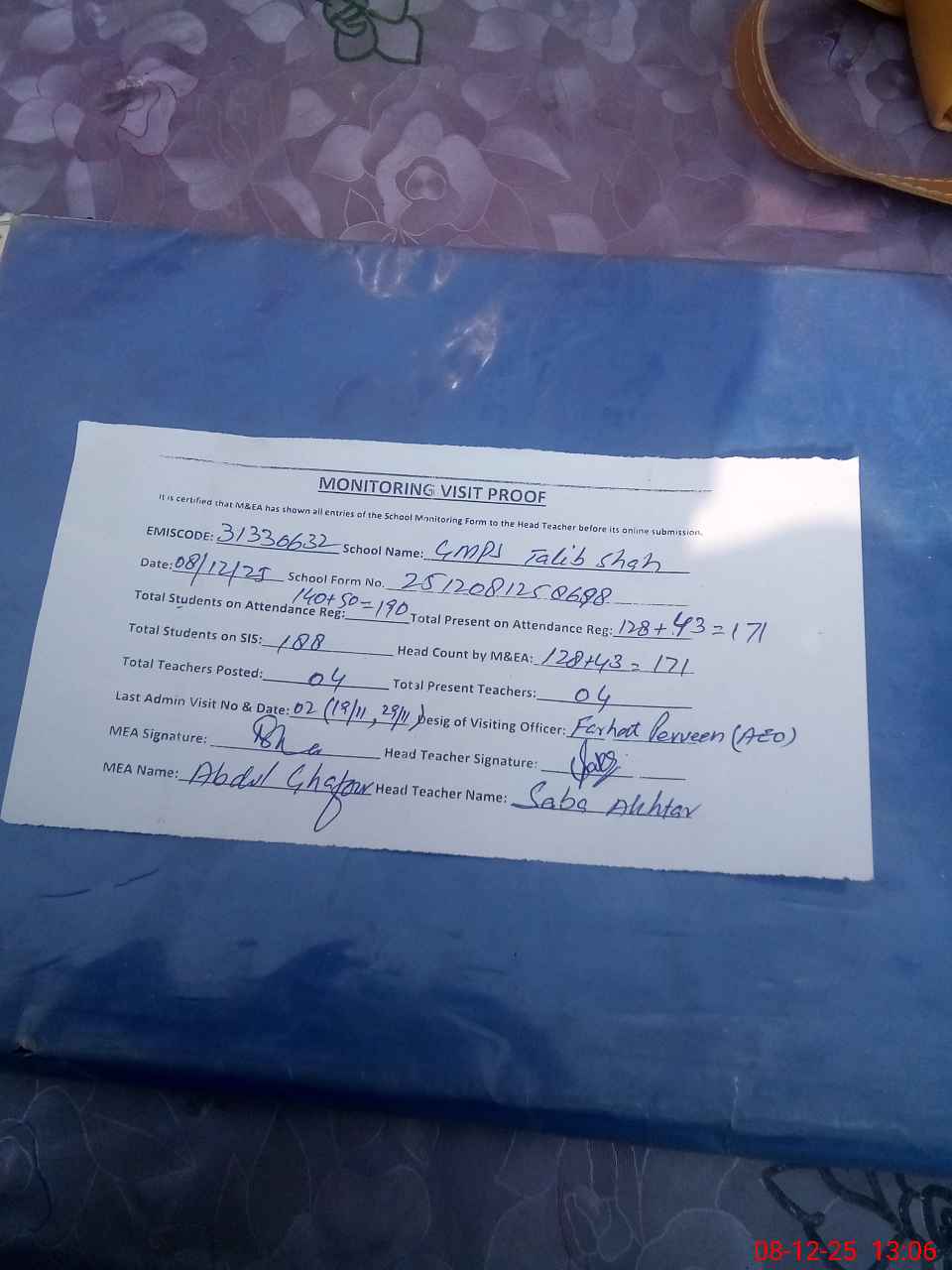 | EMIS Code: 31330632 | Name of School: GMPS BASTI TALIB SHAH | |||