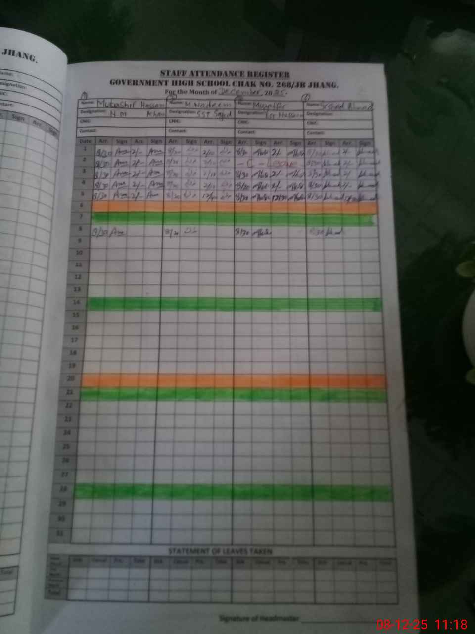 | Name: Mu**** Ha**** Kh**** Designation: (School Headmaster's/Headmistress's) HM (SST Phone/Cell Number: 03**** |