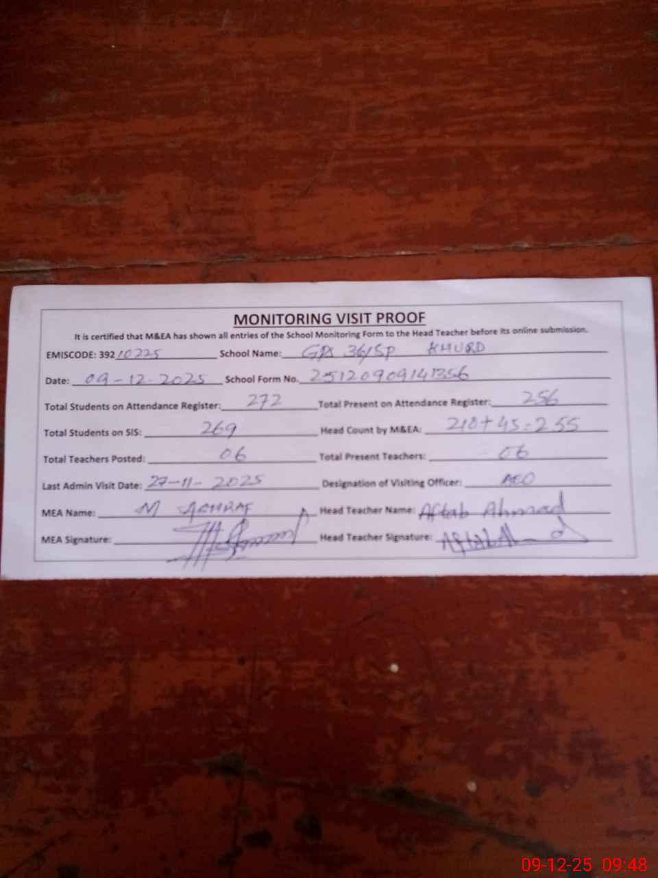 | EMIS Code: 39210225 | Name of School: GPS CHAK NO. 36/SP KHURD | |||