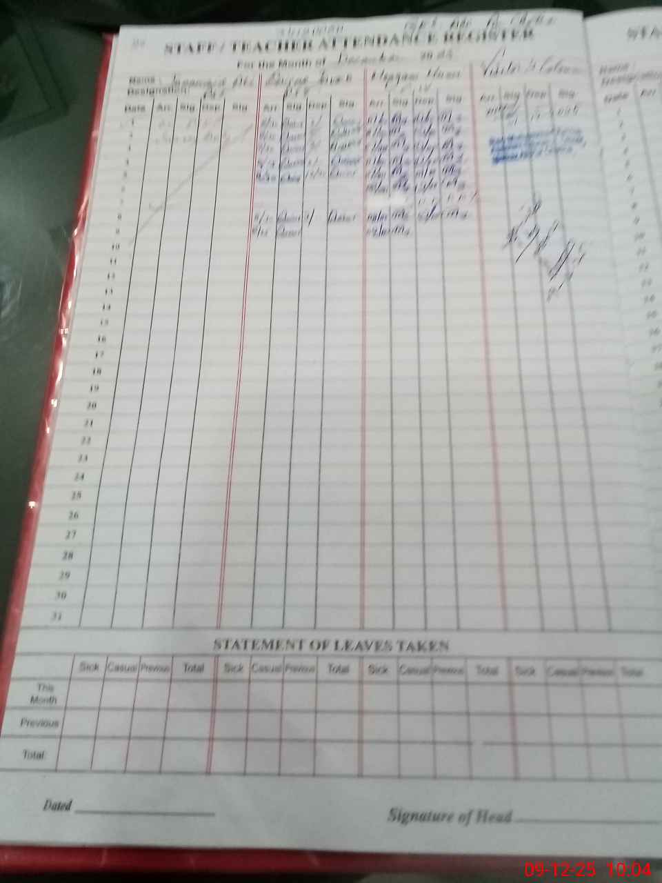 | Leave | Duty | Absent | Maternity | Medical | Ex- Pak |