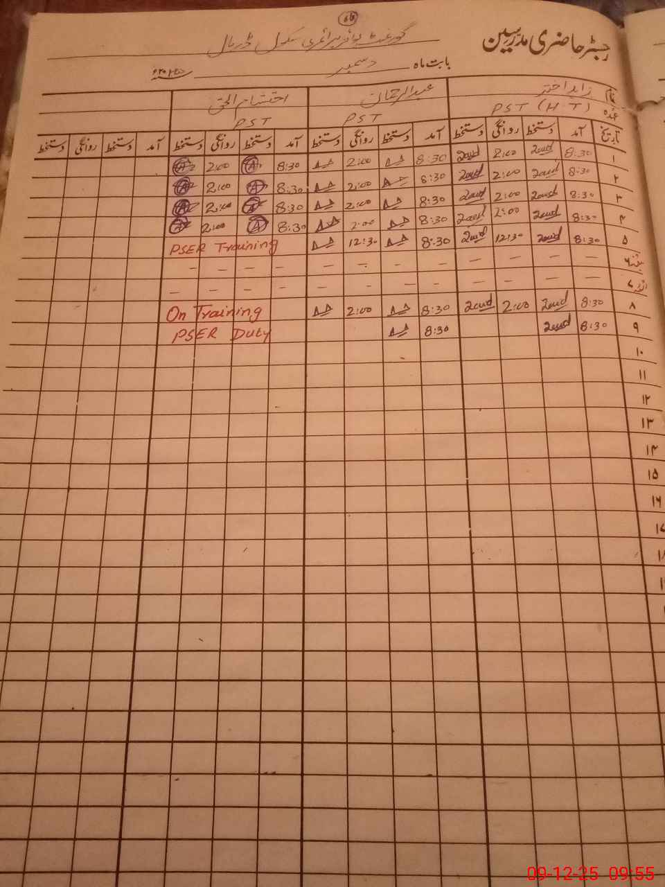 | CNIC | Full Name | Designation | R/C | Absence During Last Calender Month |