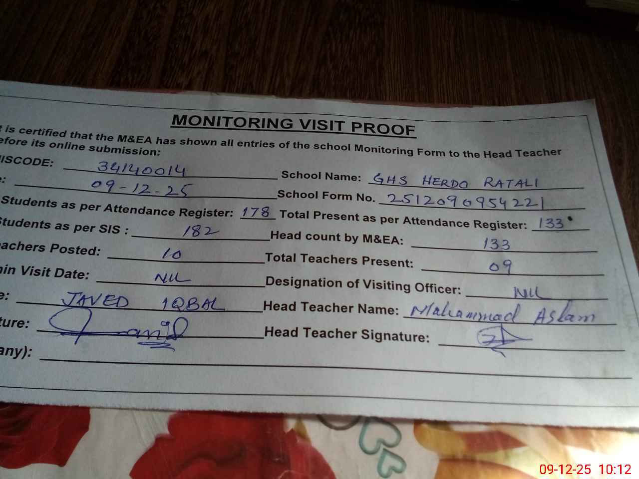 | EMIS Code: 34140014 | Name of School: GHS HERDO RATALI | |||