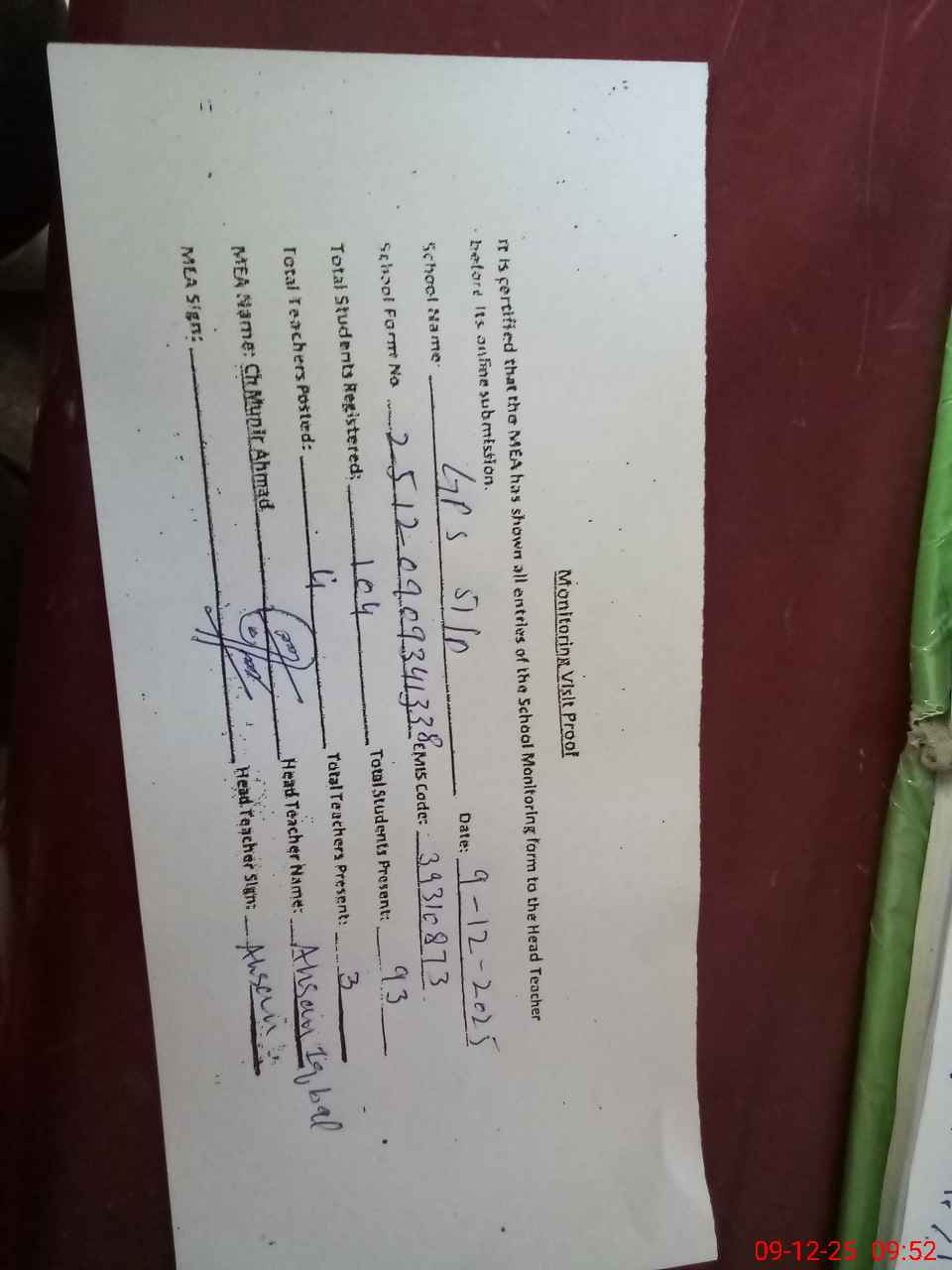 | Certified that this School was Inspected by the Undersigned MEA/DMO Today and the Information Stated Above is as Per Record. | |||||