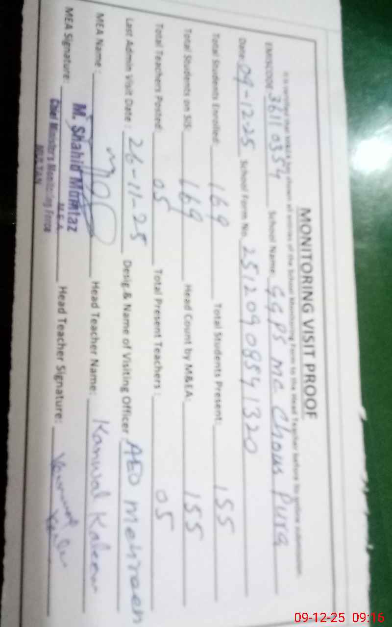 | EMIS Code: 36110354 | Name of School: GGPS MC GHOUS PURA | |||