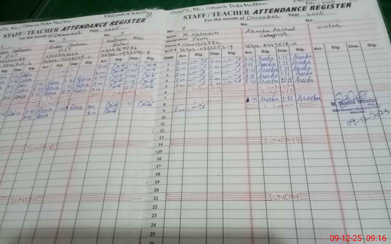 | Attendance Register | Head Teacher | MEA with School | Visit Proof |