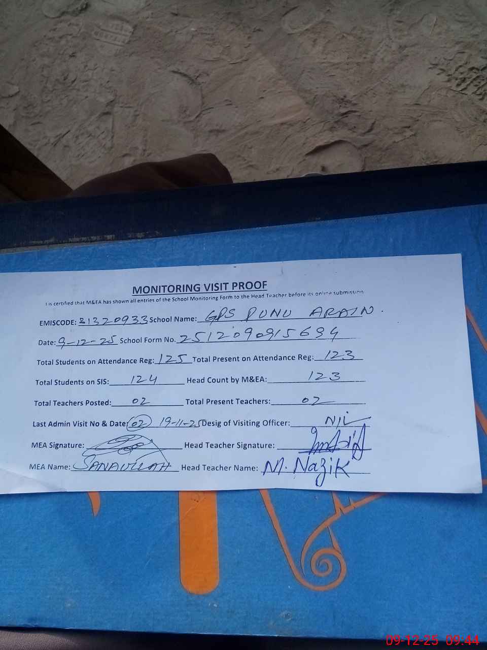 | EMIS Code: 31320933 | Name of School: GPS PUNU ARAIN | |||