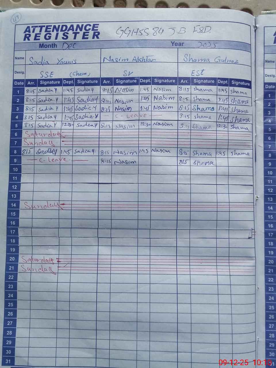 | CNIC | Full Name | Designation | R/C | Absence During Last Calender Month |