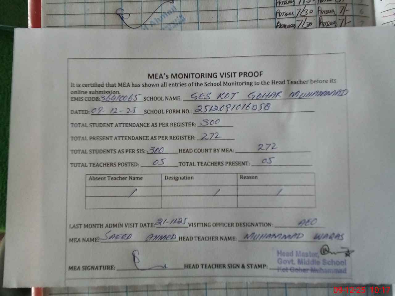 | EMIS Code: 36410065 | Name of School: GES KOT GOHAR MUHAMMAD, SARAI SIDHU | |||