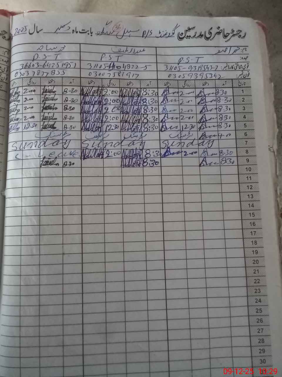 | Name: MU**** AS**** Designation: (School Headmaster's/Headmistress's) PST Phone/Cell Number: 03**** |