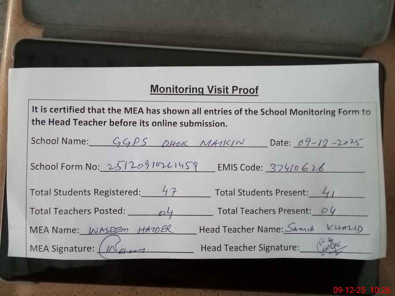 | EMIS Code: 37410626 | Name of School: GGPS DHOK MAIKIN | |||