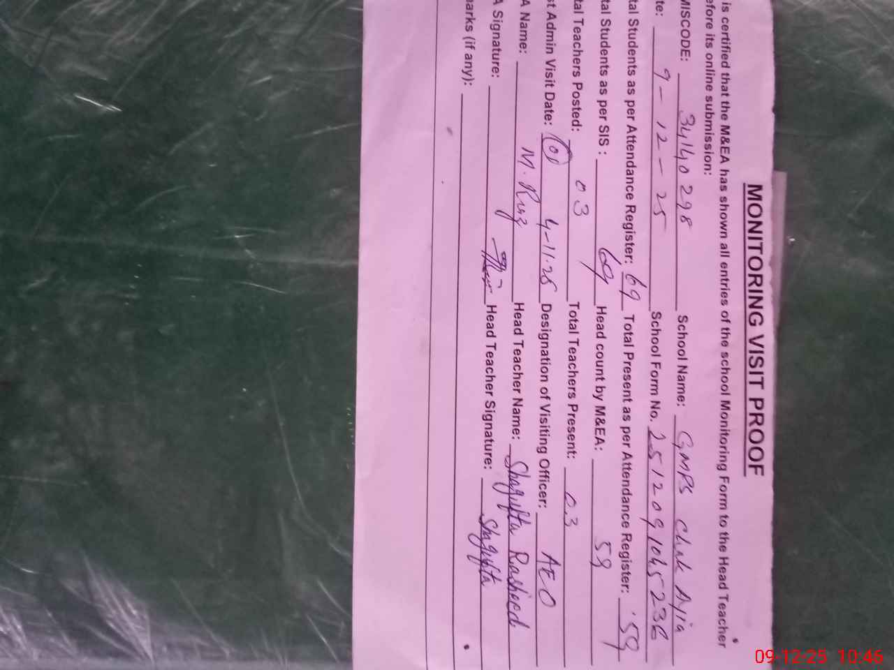 | EMIS Code: 34140298 | Name of School: GMPS CHAK AYYAH | |||