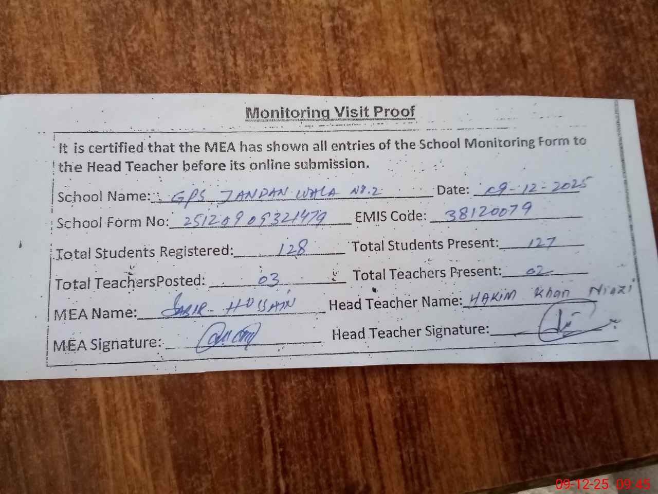 | EMIS Code: 38120079 | Name of School: GPS JANDAN WALA NO.2 | |||