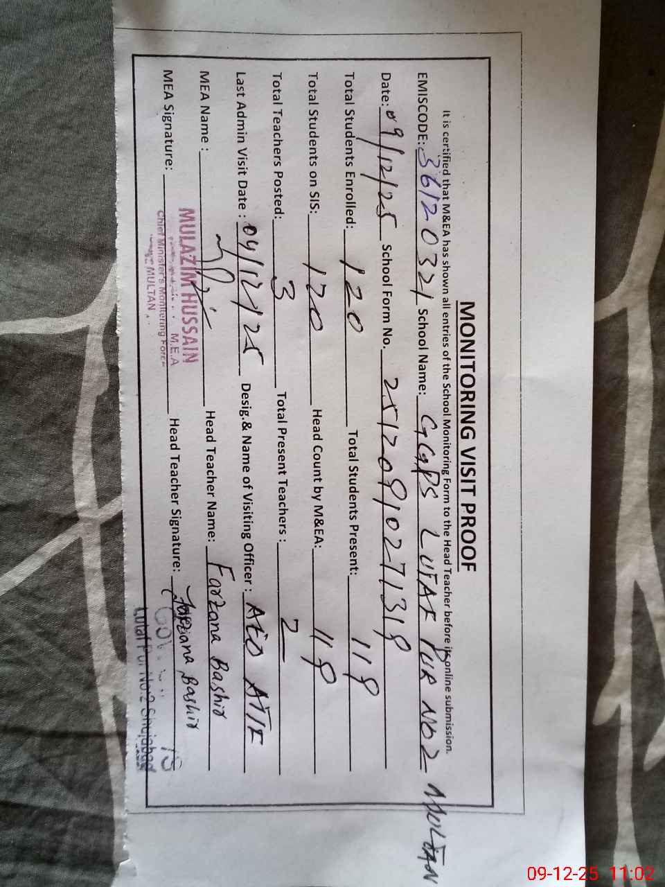 | EMIS Code: 36120321 | Name of School: GGPS LUTAF PUR NO 2 | |||