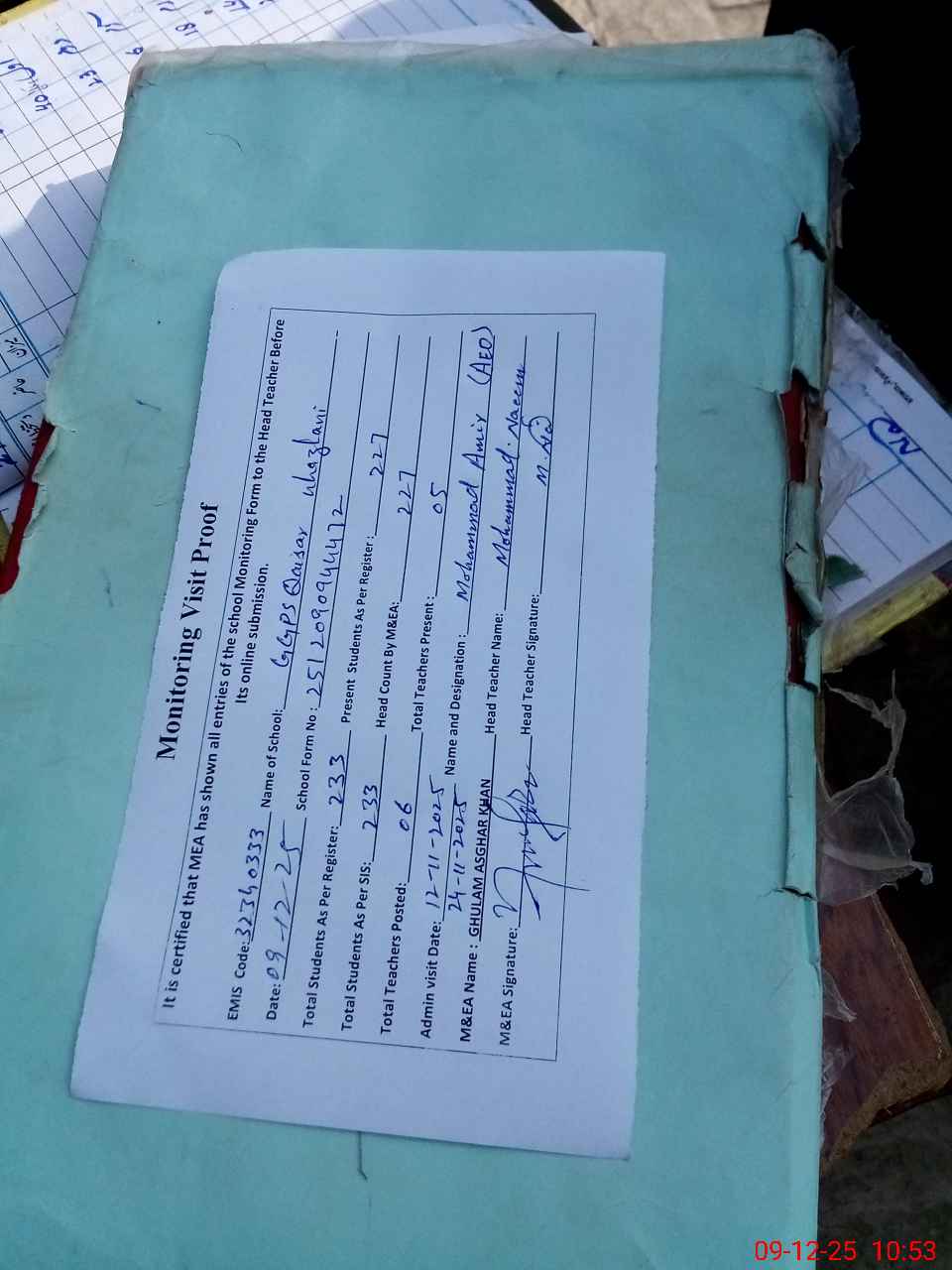 | EMIS Code: 32340333 | Name of School: GGPS QAISAR GHAZLANI | |||