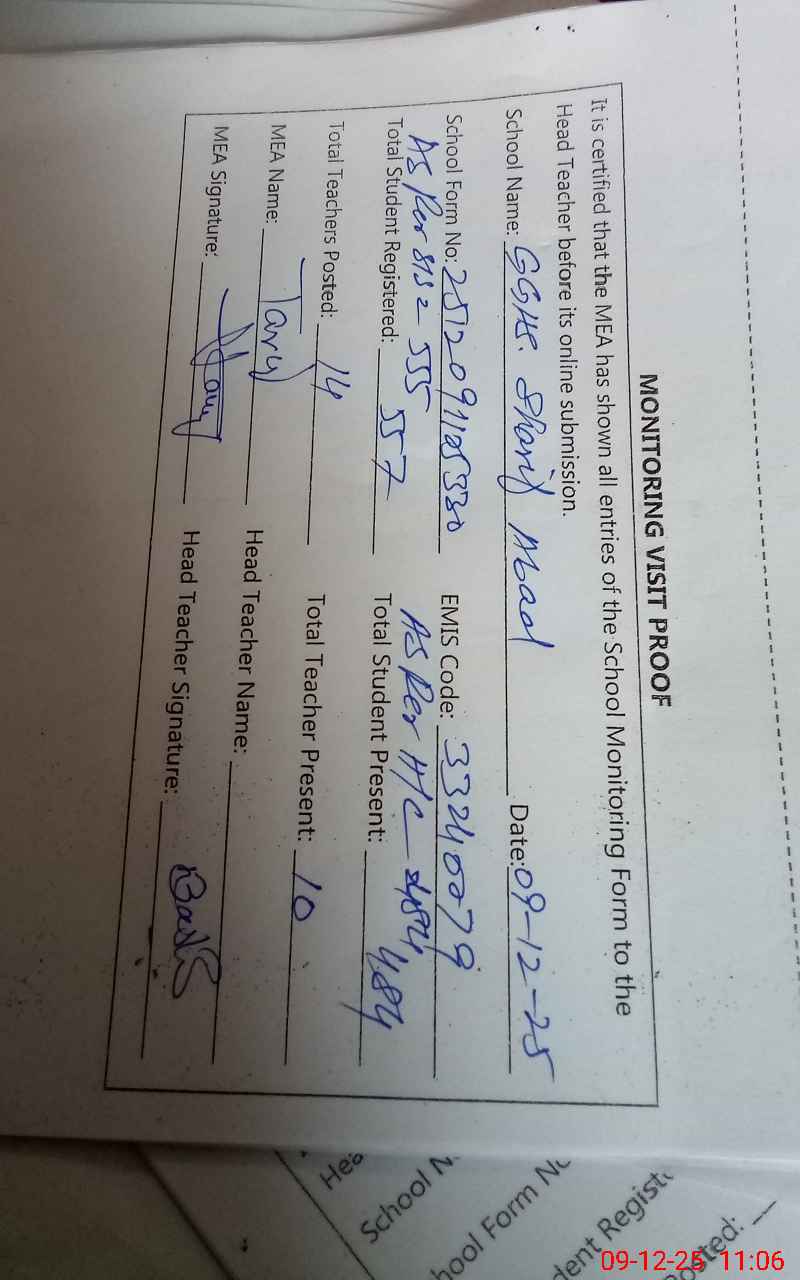 | EMIS Code: 33240079 | Name of School: GGHS SHARIF ABAD | |||
