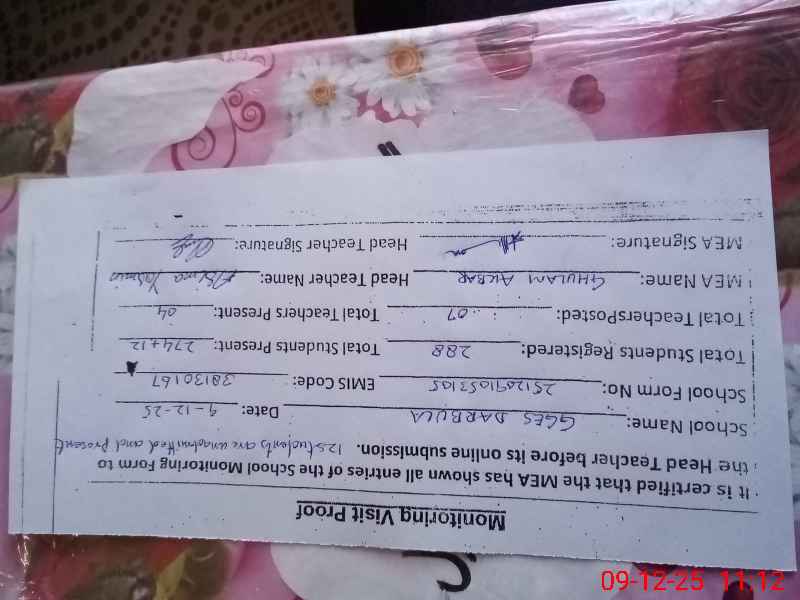 | Attendance Register | Head Teacher | MEA with School | Visit Proof |