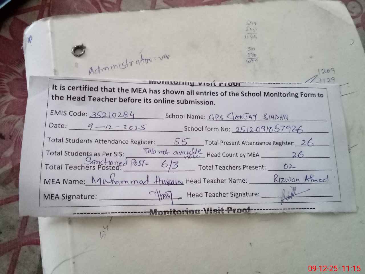 | EMIS Code: 35210284 | Name of School: GPS GANJAY SINDHU | |||