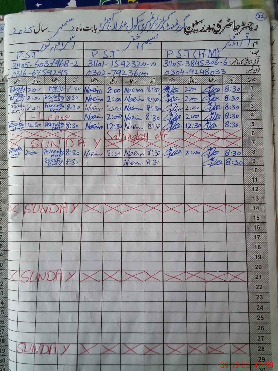 | Name: Iq**** Mu**** Designation: (School Headmaster's/Headmistress's) PST Phone/Cell Number: 03**** |